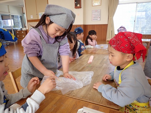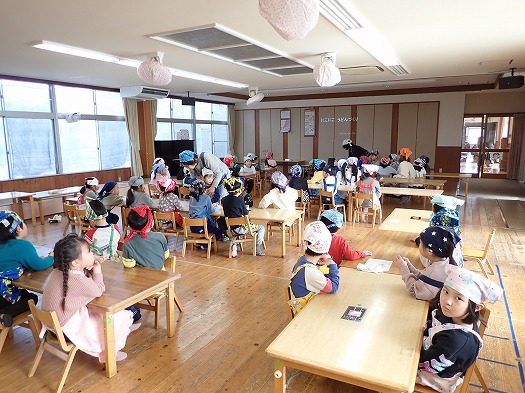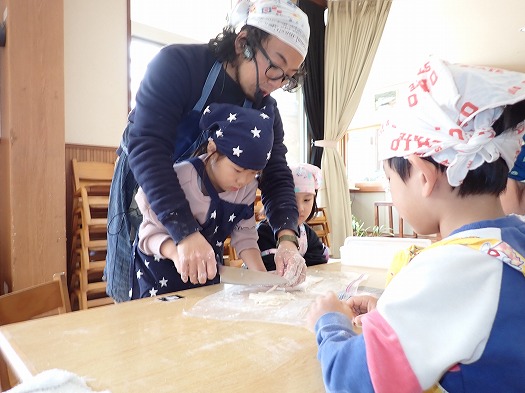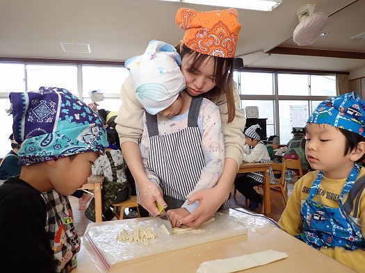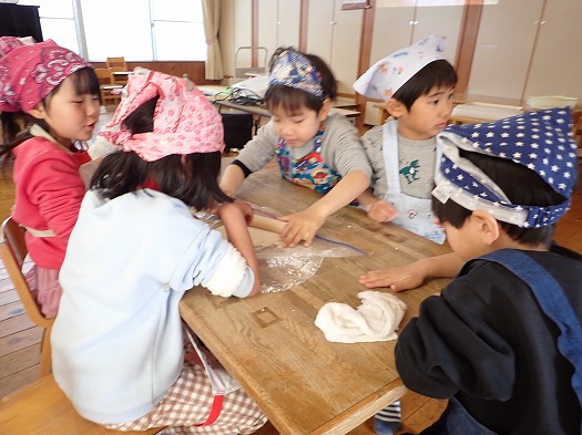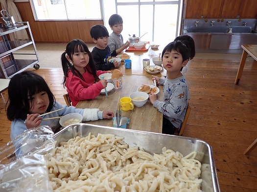 ※今日、お休みの子は、うどんを残していますので、また登園してときに一緒に食べましょうね