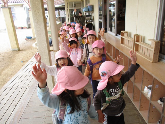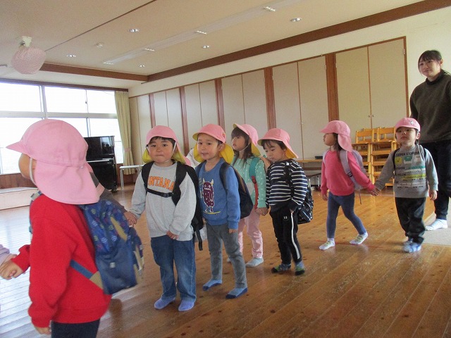 2024年03月15日 散歩ごっこ 3歳児 つき 健脚活動の練習のため、散歩ごっこをしてみました。 友だちと手を繋いでホールやテラスを歩き、横断歩道を渡る前の左右の確認や、車が来たときの対応など、こどもたちと一緒に確認しました。 こどもたちに聞いてみると「てをあげる」や「はしによるんよな」などと、歩く時に気をつけることを自分たちでから保育者に伝える姿がみられました。 一覧へ戻る
