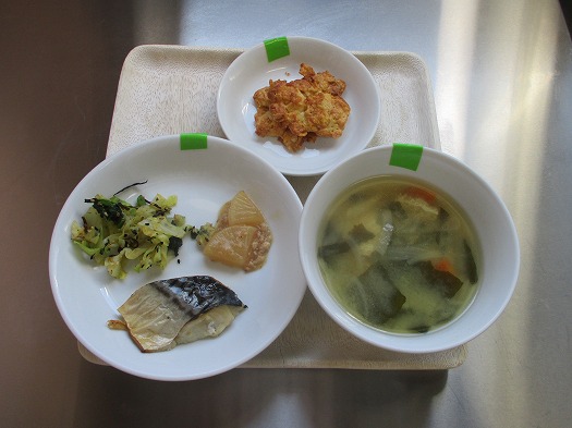 2024年03月13日 給食室(3月13日の給食、おやつ) 給食室 昼食 ・ごはん ・鯖の塩焼き ・大根のそぼろ煮 ・キャベツの塩昆布和え ・油揚げのみそ汁 おやつ ・コーンフレーククッキー ・牛乳 今日はシンプルな和食でしたがよく食べていたようです。 おやつは、みんな大好きな『コーンフレーククッキー』でした。 かみかみメニューで、リクエストメニューでした。 一覧へ戻る