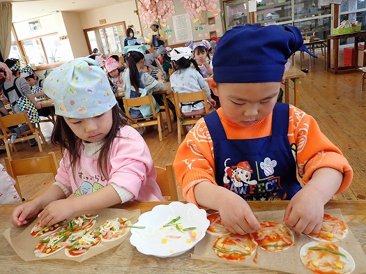 2024年03月23日 ぎょうざピザ その④ 3歳児 つき 4歳児 ほし みんなで作ると美味しいということを改めて実感しました おいしいものを食べるとほっぺたが溶けます(とろけるチーズだけに笑) 今度は、何を作ろうかな、来年度になりますがまたエプロン、三角巾の協力をお願いします 顔を作っている子もいました 準備物ありがとうございました これにて ぎょうざピザ 完結 一覧へ戻る