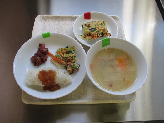 2024年04月08日 給食室(3月27日の給食、おやつ) 給食室 昼食 ・ごはん ・揚げ魚のおろし煮 ・金時豆の煮物 ・青菜のねばねば和え ・さつま芋のみそ汁 おやつ ・おからチヂミ 『揚げ魚のおろし煮』は、 白身魚に片栗粉をまぶして油で揚げて、 大根おろしと醬油を火にかけたものをからめました。 意外と食べやすくリクエストメニューです。 『青菜のねばねば和え』は、ひきわり納豆と、 砂糖醬油でからめているのですが、 これもこどもたちには人気でリクエストメニューです。 一覧へ戻る