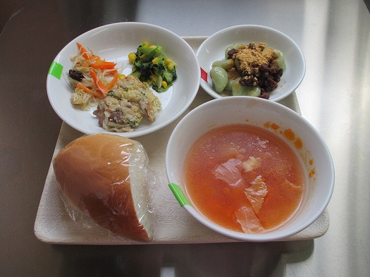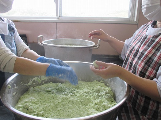 2024年04月20日 給食室(4月16日の給食、おやつ) 給食室 昼食 ・コッペパン ・豚肉のパン粉焼き ・チンゲン菜とコーンのソテー ・キャロットサラダ ・ミネストローネ おやつ ・よもぎ団子 今日の旬は、『キャロットサラダ』の人参! そして『よもぎ団子』のよもぎ! 丘の上にはいまが旬のよもぎも生えています。 みんなのためにいっぱい収穫! このよもぎを使って、 緑色の白玉団子を作りました。 手作りのあんこときなこもかけて、今日のおやつが出来ました。 一覧へ戻る