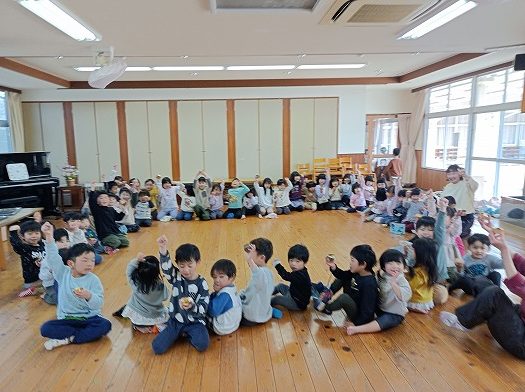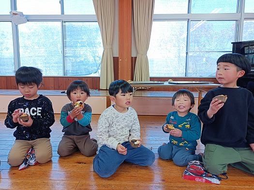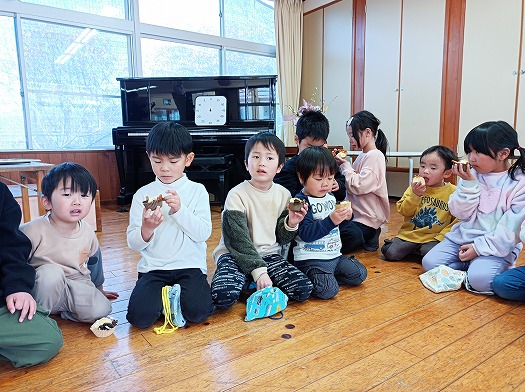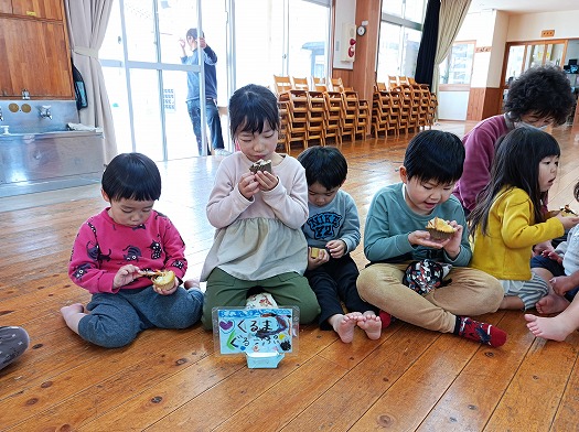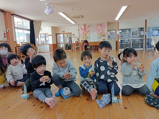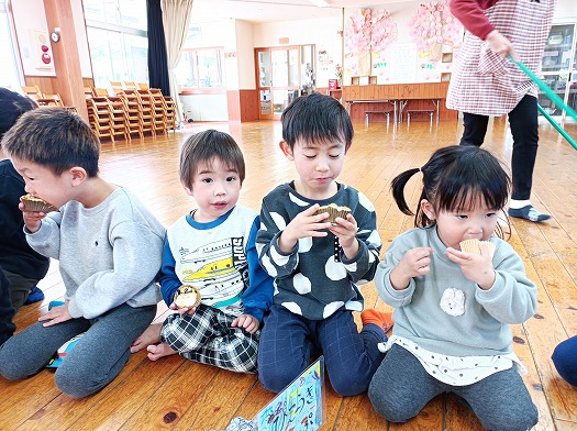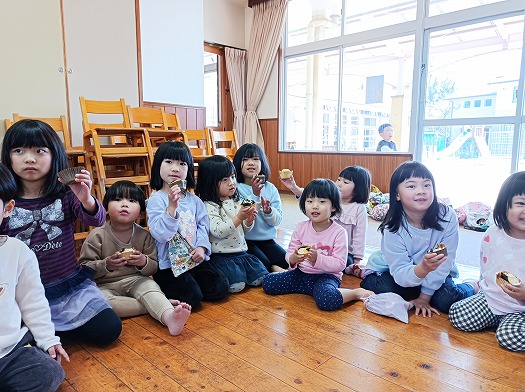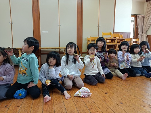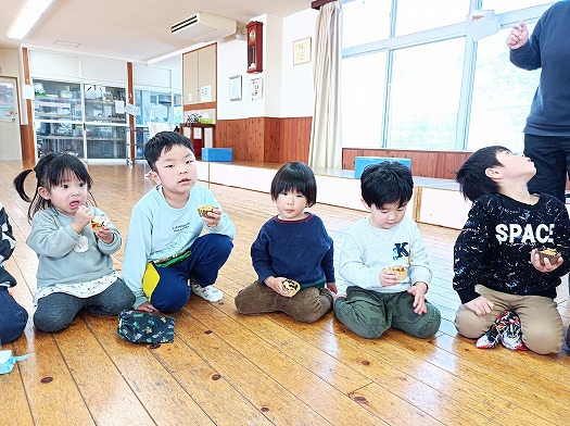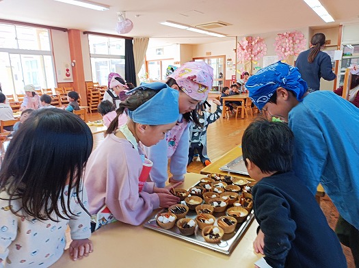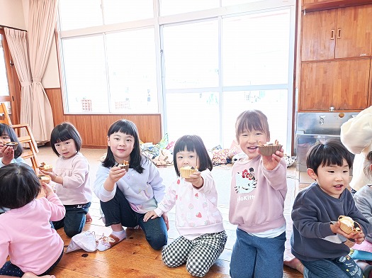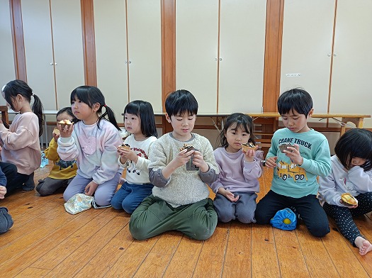 2024年03月16日 そら・にじ クッキング② 2歳児 にじ 5歳児 そら トッピングが出来たら、給食室で焼いてもらいました。 焼く前はこんな感じかぁ… 出来上がり! みんなで食べよう! 美味しかったね! 一覧へ戻る