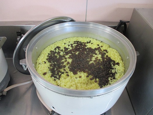 カレー粉とコンソメを入れてごはんを炊くのですが、