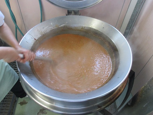 大きな釜で作ったミートソースをかけるのですが、