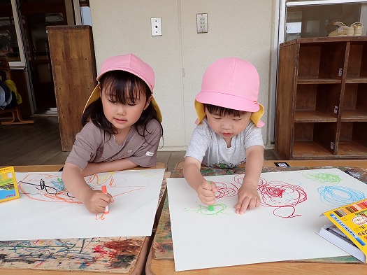2024年05月09日 MYクレパス♪ 3歳児 つき お道具箱の中に入っている自分のクレパス。 「おえかきしよう。クレパス持っておいで」と声をかけると、みんな大喜びで、ロッカーへ向かって走り、サッと持ってきます。 好きな色を自分で選んで、グルグルと、色を変えながら楽しんでいました。 一覧へ戻る