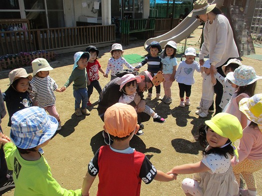 「きゃ~」と逃げて追いかけっこを楽しみました。