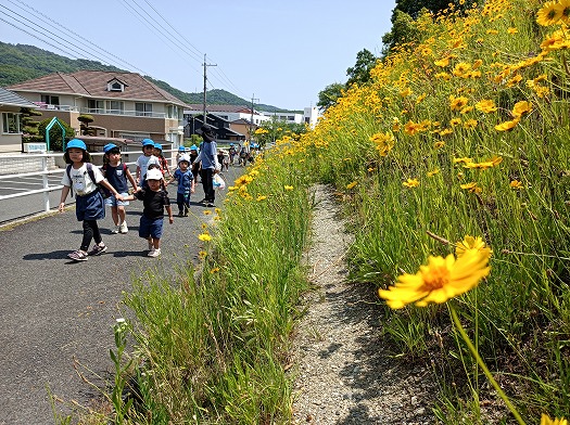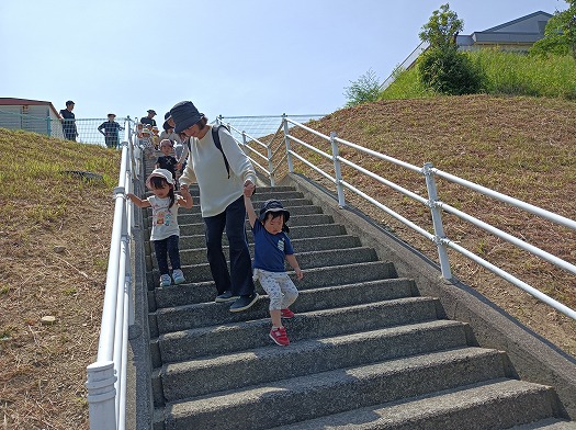 2024年05月28日 歩こう 2歳児 にじ 5歳児 そら そら組と一緒に幼稚園、小学校まで歩いて行きました。 天気も良く、長い階段も上り下りが出来ました。 少し小学校前で休憩してから保育園まで帰りました。 お兄さん、お姉さん。またよろしくね! 一覧へ戻る