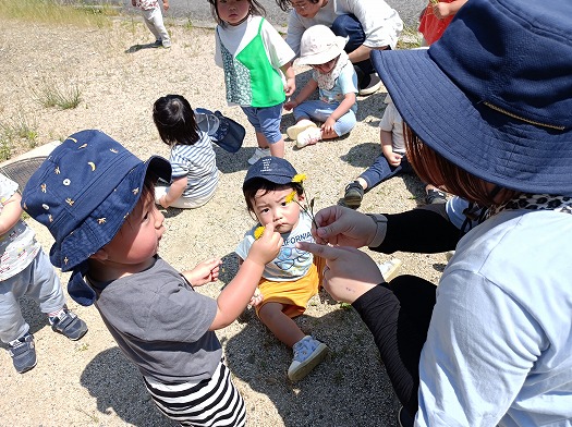 くちぶえの家では園にはない植物やお花を見つけて興味津々のこどもたちでした。