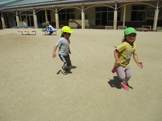 2024年06月17日 ふえおに 4歳児 ほし オニに捕まりたくなくて逃げている反面、「こっちだよ」と大きな声を掛けてオニに追いかけてほしいこどもたち。 緑帽子からどんどん黄色帽子増えていき、オニから逃げることが難しくなってきていましたが、最後まで逃げ切る子もいました。 とても楽しそうで、何度もふえおにをしました。 一覧へ戻る