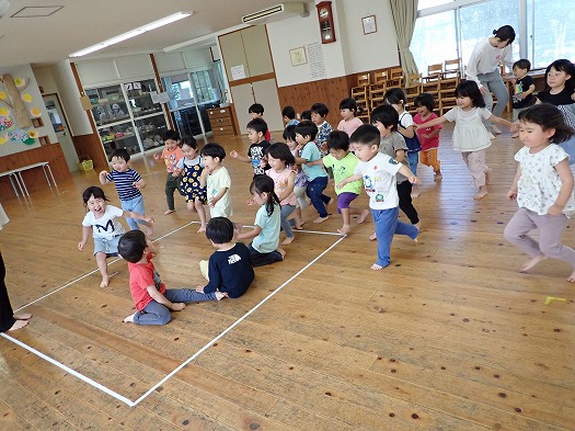 2024年06月11日 ○×□ 3歳児 つき ホールで「○△□」を、○と×と□でしました。 よく聞いて、言われたマークに向かってレッツゴー! 鬼に捕まる前に、マークに入って 鬼に捕まったらちょっぴり休憩 おもしろかったようで、みんな張り切って参加していました。 またしようね♪ 一覧へ戻る