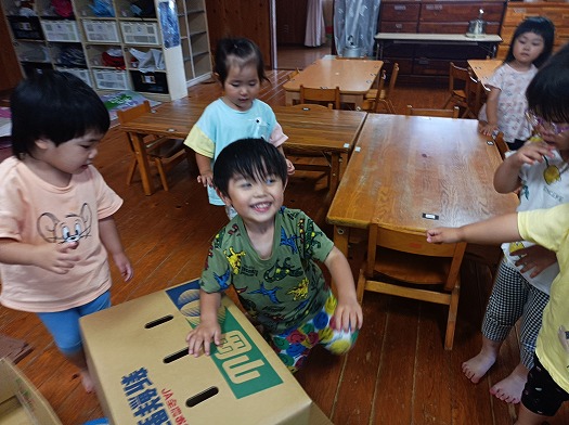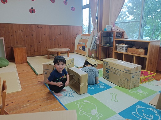 2024年06月29日 もういいかい? 2歳児 にじ にじ組の部屋でかくれんぼをしました。 自分で隠れるところを見つけて隠れることができていました。 最後まで隠れていた子は段ボールの中に隠れていました。 一覧へ戻る