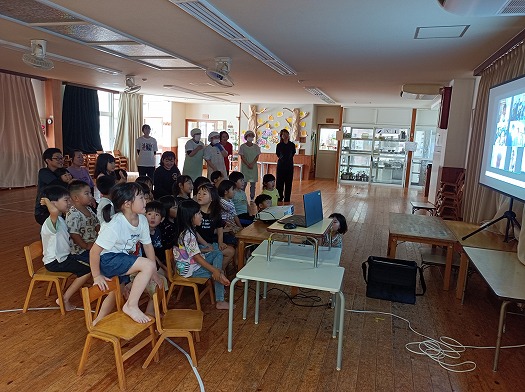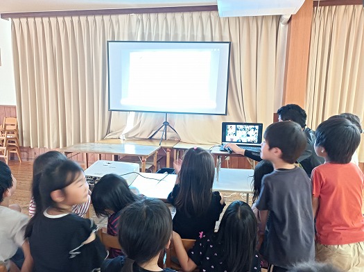 ズームをつながった場所は礼文島ではなかったのですが、宗谷岬にいる職員とズームがつながり、こどもたちは大喜び