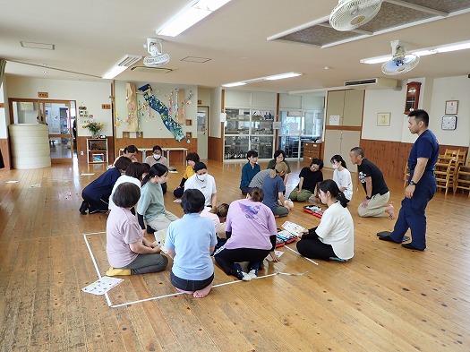 2024年07月12日 救急法 参加 おしらせ 毎年、赤磐市消防署から署員が来てくださり救急法を教えていただいています 今回は、さくらが丘保育園から7名(撮影者も含む)が心臓マッサージやADEの使い方を実践的に受講しました たくさんの命を預かっていることを改めて感じる機会になりました 一覧へ戻る