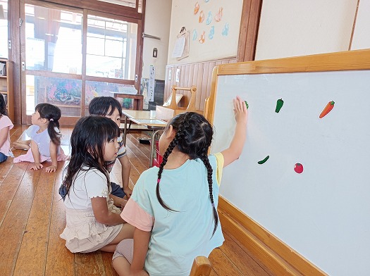 同じグループの人たちと何の野菜グループにするのか話し合いをしていると…