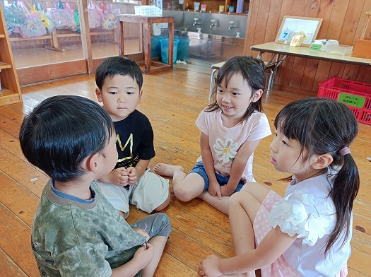 集まりの座る位置や給食、おやつの机もグループごとになり、新鮮さを感じながら過ごしています。