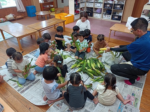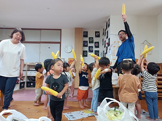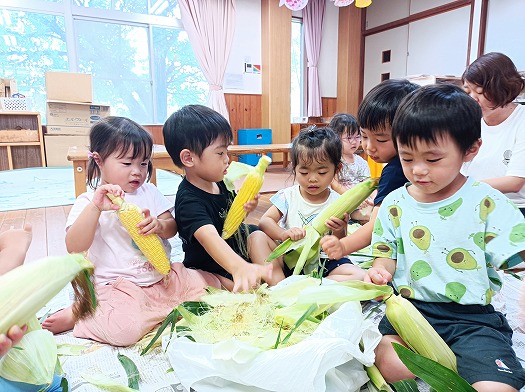 2024年07月31日 トウモロコシの皮むき 2歳児 にじ 給食室のお手伝いでトウモロコシの皮むきをしました。 一生懸命剥く…ひたすら剥く…。 皮の間から黄色の実が見えると、笑顔がこぼれていました。 皮が剥けたトウモロコシは給食室に届けました。 給食室にいくぞー! 明日のおやつが楽しみだね☆ 一覧へ戻る