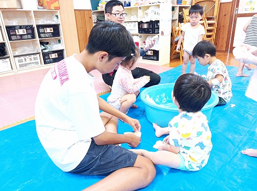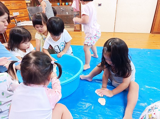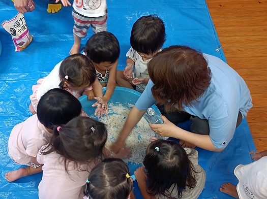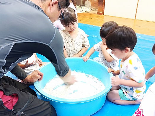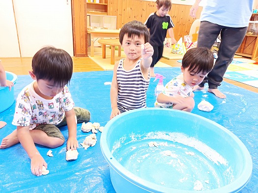 だんだん固まってくる様子に不思議そうな子どもたちです。