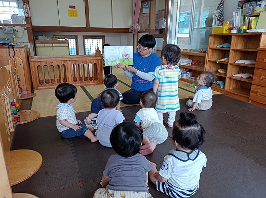 こどもたちが大好きな「しあわせならてをたたこう」の絵本を読んでみんなで楽しんでいます♪