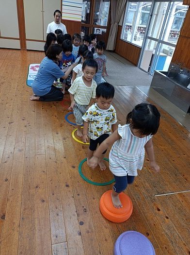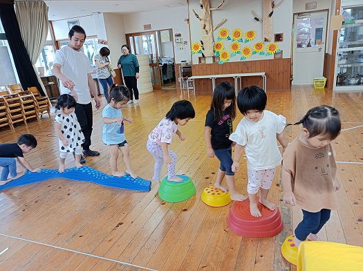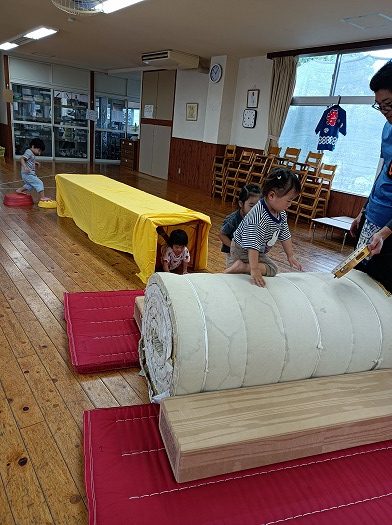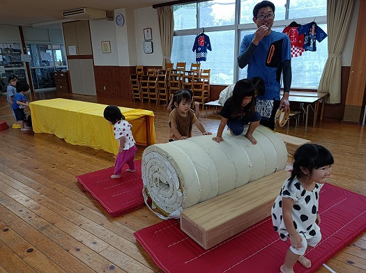 ロールマットは初めての設置でしたが器用に登って後ろを向いて降りていたので保育者の方がびっくりでした。