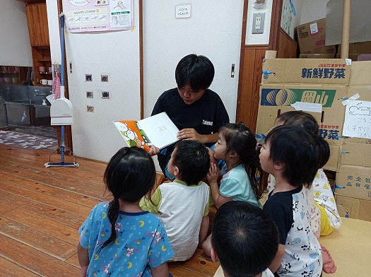 2024年09月10日 職場体験 2歳児 にじ 昨日から職場体験で、中学校のお兄さんがにじ組に来てくれています。 一緒に遊んだりご飯を食べたり、掃除を手伝ってくれたりしています。 こどもたちもお兄さんに遊んでもらって大喜び! 今日は午睡前の時間に絵本を読んでもらいました。 皆、興味津々で聞いています。 一覧へ戻る