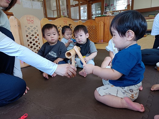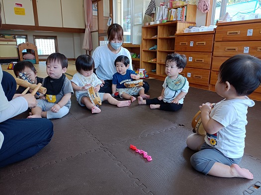 タンバリンや鈴などいろいろな楽器を触ってみました。