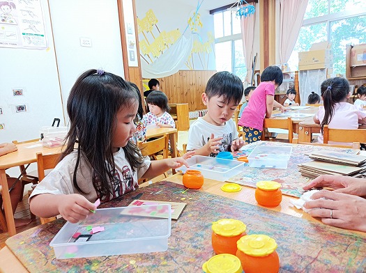 2024年09月19日 きって、ぬって、はって 2歳児 にじ こどもたちの大好きなワニワニシリーズの絵本を読みました。 ワニワニの真似をしてけいたいでんわをつくってみよう! まずは色画用紙をハサミで一回切りします。 切って、切って♪ 次に、段ボールにクレヨンで絵を描いて~ ぬって、ぬって~♪ 最後にノリで貼り付けます! はって、はって~♪ 完成したらみんなで遊びたいなと思っています! 一覧へ戻る