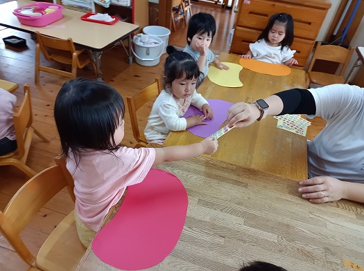 「このシールが好き!これがいい!」と選ぶ子もおり、自分の気持ちを自分なりに表現する姿も見られるようになりました。
