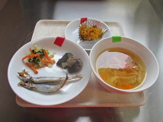 2024年10月11日 給食室(10月7日の給食、おやつ) 給食室 昼食 ・ごはん ・ししゃもの素焼き ・なすの肉みそ炒め ・野菜のごま和え ・ばち汁 おやつ ・スイートパンプキン ・牛乳 『なすの肉みそ炒め』は、旬の食材でした。 こどもたちには不人気😭 頑張って食べてくれていましたよ。 『ばち汁』は人気でよく飲んでいました。 今日のおやつは、『スイートパンプキン』でした。 かぼちゃは、美容と健康にいいですよ。😊 一覧へ戻る