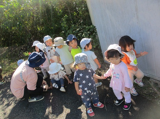 2024年10月11日 歩こう~♪ 1歳児 ゆき 涼しくなって、絶好の散歩日和がやってきましたね! くちぶえの家まで散歩に出掛けました。 友だちや保育者と手を繋いで、いざ出発! 繋いだ手を離さないように歩くのは、とても難しかったですが、みんな頑張って険しい坂を往復しました。 時折、座り込んだり、転んだり、靴が脱げてしまったりすることも…。 それでも、最後まで諦めず、全員で歩いて帰ることが出来ました♪ 一覧へ戻る
