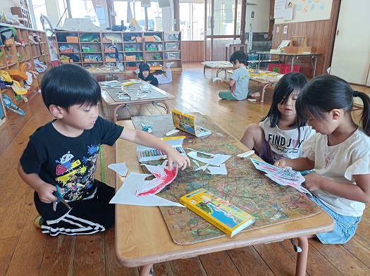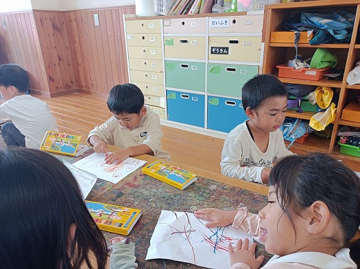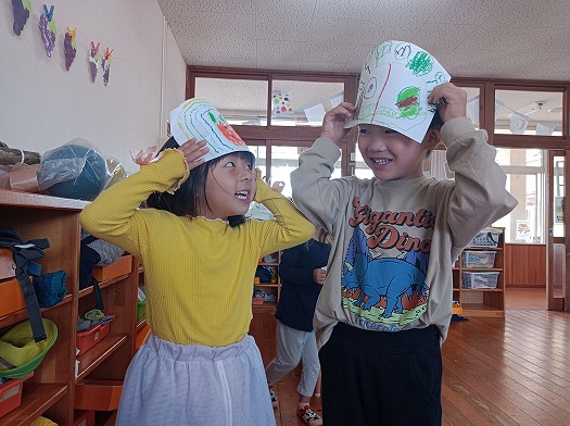 2024年11月01日 パレードに向けて① 4歳児 ほし お面の製作をしました。 自分の好きなようにおばけを描きましたが、鬼を描いている子も多くいました。 お面が完成すると、頭に付けて外で楽しそうに遊んでいました。 一覧へ戻る