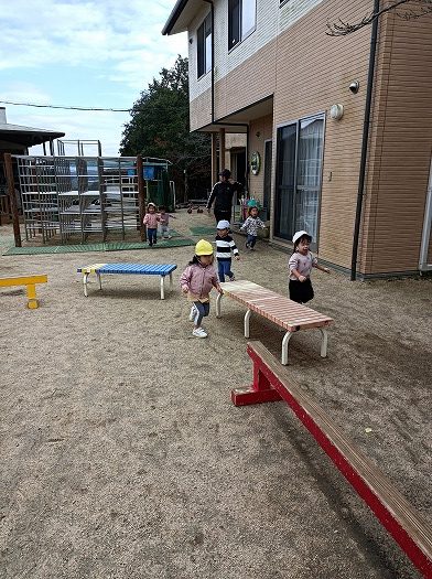さあ、かくれてね!と声を掛けると,、自分で隠れれるところを探しに走り出す子どもたち。