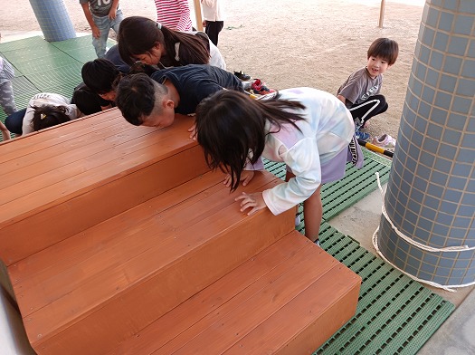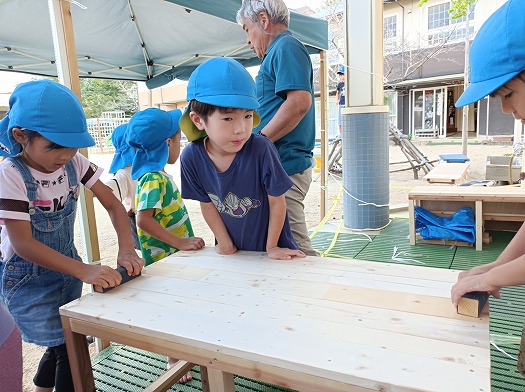 2024年11月20日 滑り台作製に一役かっています 5歳児 そら 子育て支援センターの滑り台作製にこどもたちが一役かっています サンドペーパーで磨きます じぶんたちが 作製 したすべり台がどんな感じかな つるつるしているかな そら組よりももっともっと小さい子が楽しめそうかな 一覧へ戻る