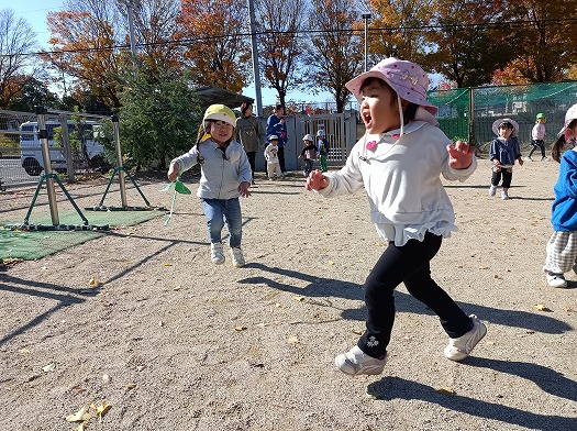 2024年11月29日 恐竜のしっぽとり 2歳児 にじ 1.6キロの距離を歩いていちょうの森こども園まで散歩に行きました。 到着すると、いちょうの森のにじぐみさんが、恐竜のしっぽとりに誘ってくれました。 恐竜のしっぽとったよー 恐竜のしっぽをつけた、いちょうの森のこどもたちを、一生懸命追いかけて…。 まてー! 帰りもしっかり保育園まで歩ききりました。 一覧へ戻る
