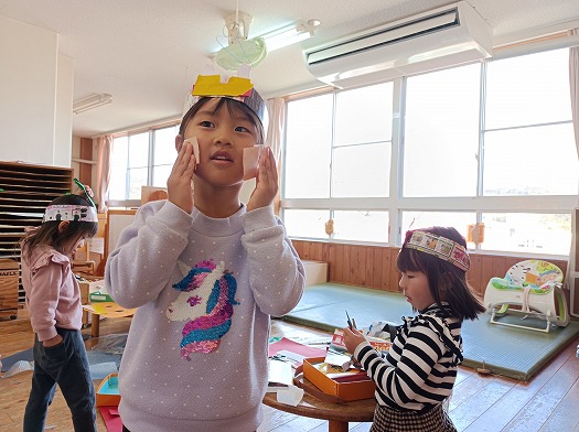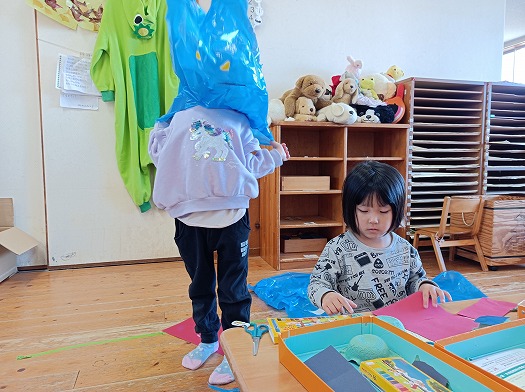 みんなが楽しみにしている園公開に向けて、自分がなりたい妖怪の衣装やアイテムを、自分で考えて製作しています。