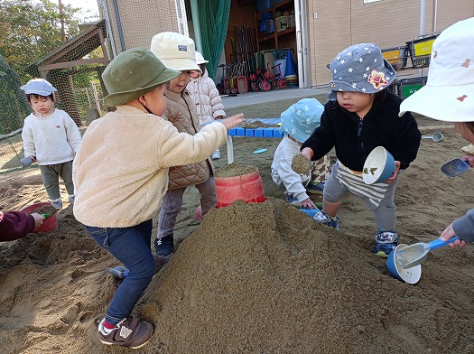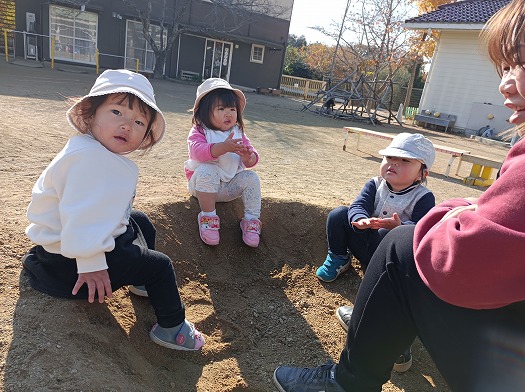 これも、一人の子がお風呂のように使っていたのがきっかけで、気が付くと数人の子が穴に入って笑い合っていました。