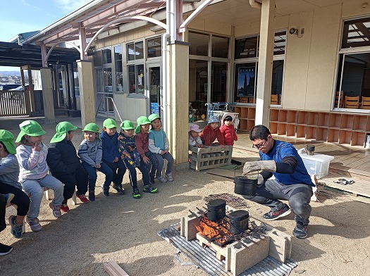 にじぐみとほしぐみが、一緒に飯盒炊飯をしました。