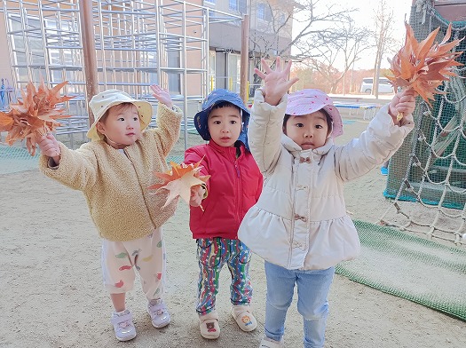 落ち葉の葉っぱ、でいろんなあそびを思いつく子どもたちが、とてもすてきです!