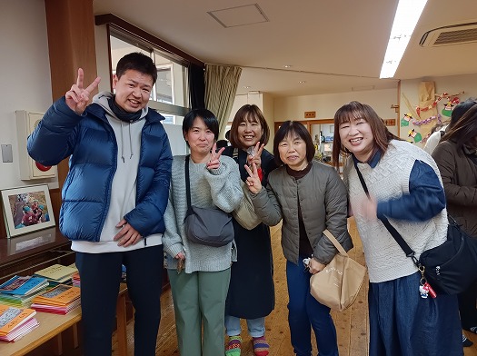 さくらが丘保育園で大きくなり、今は保護者としてさくらが丘保育園に来てくださっている方も、お子さんを連れきて、なつかしさの写真やビデオを見ながら話しに華が咲いていました