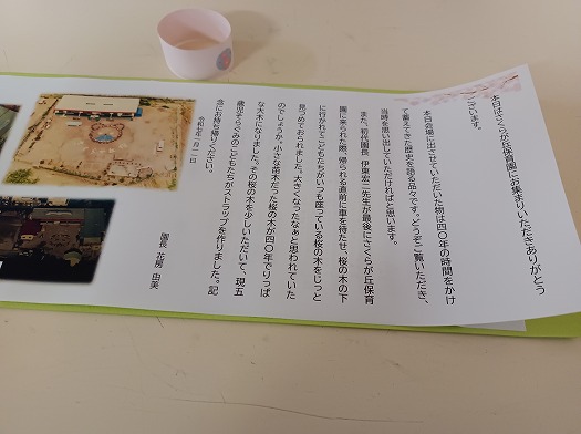 写真の左にあるストラップは、さくらが丘保育園がスタートしたときに植えた桜の木
