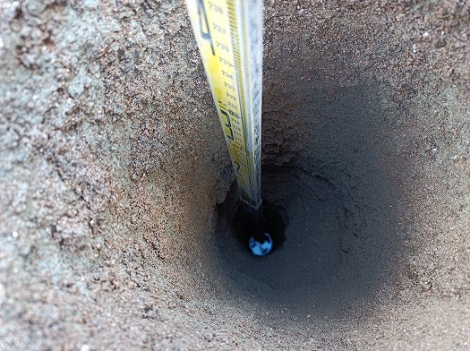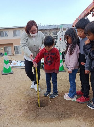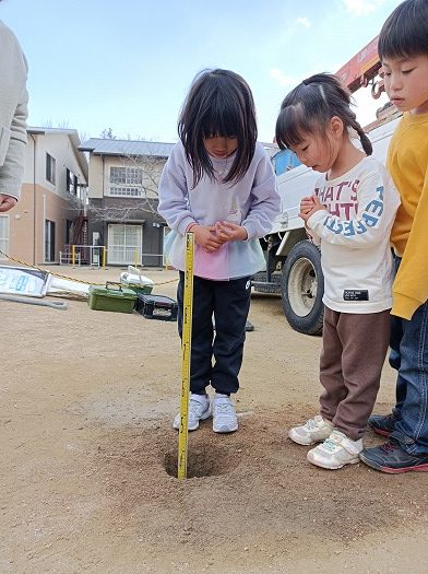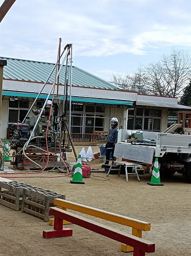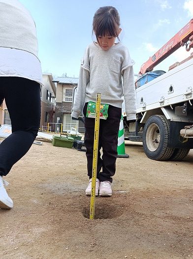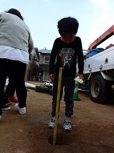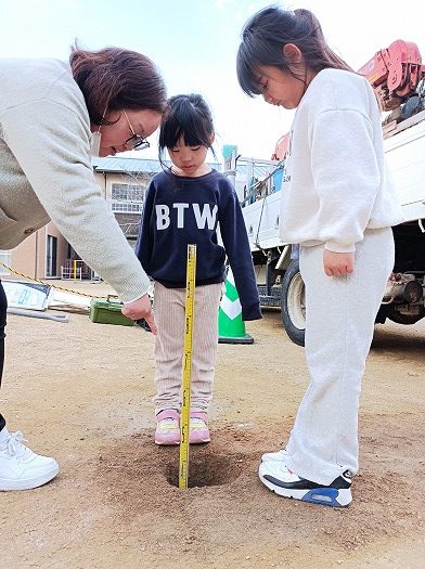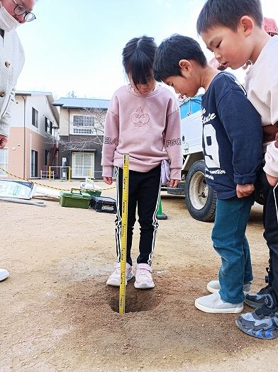 ボーリング調査を行い、地面の硬さなど、こどもたちにとっては初めて見ることがたくさんです