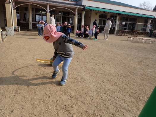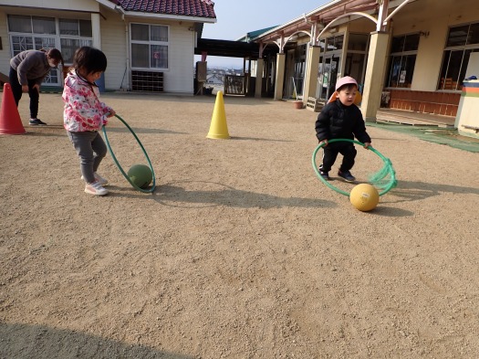 2025年02月10日 ボール転がしリレー 3歳児 つき 2チームに分かれて、フラフープでボールを運ぶ「ボール転がしリレー」をしました。 早く進みたくて走って行くこどもたち。途中でボールがないことに気づき、スピードをゆっくりにするなど、自分たちで進むスピードを調節している姿がみられました。 自分の番を待っている子、終わった子は「がんばれー!」と大きな声で応援し、チームで協力する力がついてきているんだと感じました。 一覧へ戻る