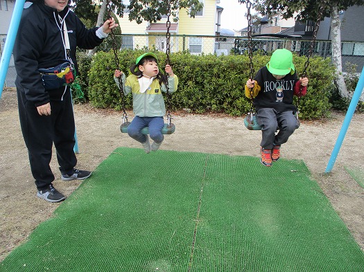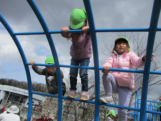2025年03月10日 健脚活動 4歳児 ほし 健脚活動で2つの公園に行きました。 西10丁目の公園ではブランコが大人気! 待っている子が「変わってくれないよ」と悲しくなることもありましたが、みんなで「1、2、3…」と秒数を数えて順番を待っていました。 変わってもらえると笑顔に大変身していました♪ ゆば公園は2つ目の公園で疲れているかなと感じていましたが、また違う遊具があって嬉しそう! たくさん身体を動かし、お腹ペコペコになってお弁当を食べました! お弁当の用意ありがとうございました。 一覧へ戻る