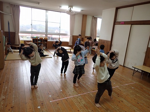 今までに踊ったことがある曲は振りを覚えている子もおり、保育者の隣に立って踊る姿もみられました。