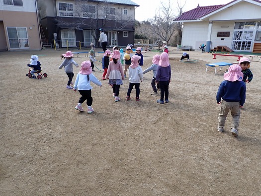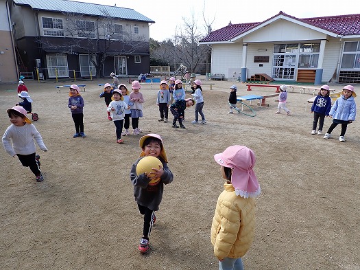 2025年03月29日 転がしドッジボール 3歳児 つき 転がしドッジボールをしました。 何度かしたことがあったため、ルールの確認を行うと「ボールに当たらないように逃げる」「当たったら外にでる」などと言う姿がみられました。 いざ始まると逃げるだけでなく、ついボールを蹴ってしまう姿もありました。 当たらないようにするゲームですが、ボールを転がしたい思いが強いこどもたちは、当たっても嬉しそうでした。 一覧へ戻る