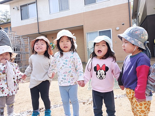 2025年04月18日 くまさ~ん 2歳児 にじ むっくりくまさんをしました。 むっくりくまさんのうたを歌うことは少し難しそうでしたが、保育者の声や動きを見て真似していました。 「くまさ~ん」 と呼ぶ声はとても大きな声のこどもたち。 くまさんが「うわぁ~」と起きると「きゃ~」と言いながらも笑顔で逃げていきました。 次の日に「くまさんは」と楽しみにしている様子があり、こどもたちのお気に入りのあそびの1つになったようです。 これからもたくさん楽しみたいです。 一覧へ戻る