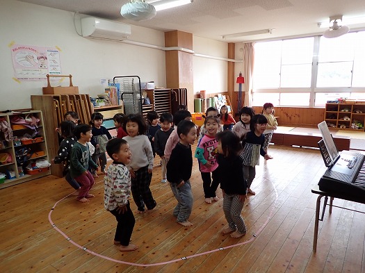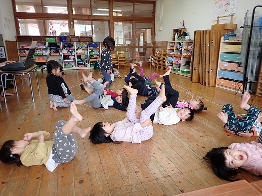 さくらさくらんぼのリズムあそびをしました。