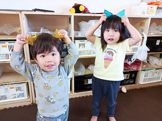 何になるのか気になっていると「にゃん、にゃん」と猫に変身している子や「お~に~だ」と鬼に変身している子がいました。