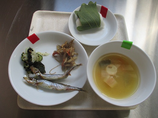 2025年05月02日 給食室(5月2日の給食、おやつ) 給食室 昼食 ・麦ごはん ・ししゃもの素焼き ・きんぴらごぼう ・きゅうりの酢の物 ・えのきのみそ汁 おやつ ・柏餅 きょうのメニューはしっかりかんで食べるように、 『麦ごはん』『ししゃもの素焼き』おやつの『柏餅』が、 かみかみメニューになっていました。 旬の食材”ごぼう”もかみかみでしたね。 5月5日はこどもの日、少しはやいのですが、 おやつが『柏餅』になっていました。 <お詫び> 献立の写真に『麦ごはん』が載っていませんでした。 すみません。 一覧へ戻る
