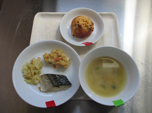 2025年05月09日 給食室(5月7日の給食、おやつ) 給食室 昼食 ・ごはん ・鯖の塩焼き ・炒り豆腐 ・野菜の酢みそ和え ・たまねぎのみそ汁 おやつ ・ポテトブレッド ・牛乳 今日の旬の食材は”キャベツ””たまねぎ”“ジャガイモ”でした。 キャベツは柔らかいので、和え物にはちょうどいいです。 新たまねぎは甘いのでお汁も甘くなってのみやすいです。 ジャガイモはおやつでパンの生地に小さくきっていれました。 新メニューで、ベーコンとチーズも入って美味しかったです。 一覧へ戻る